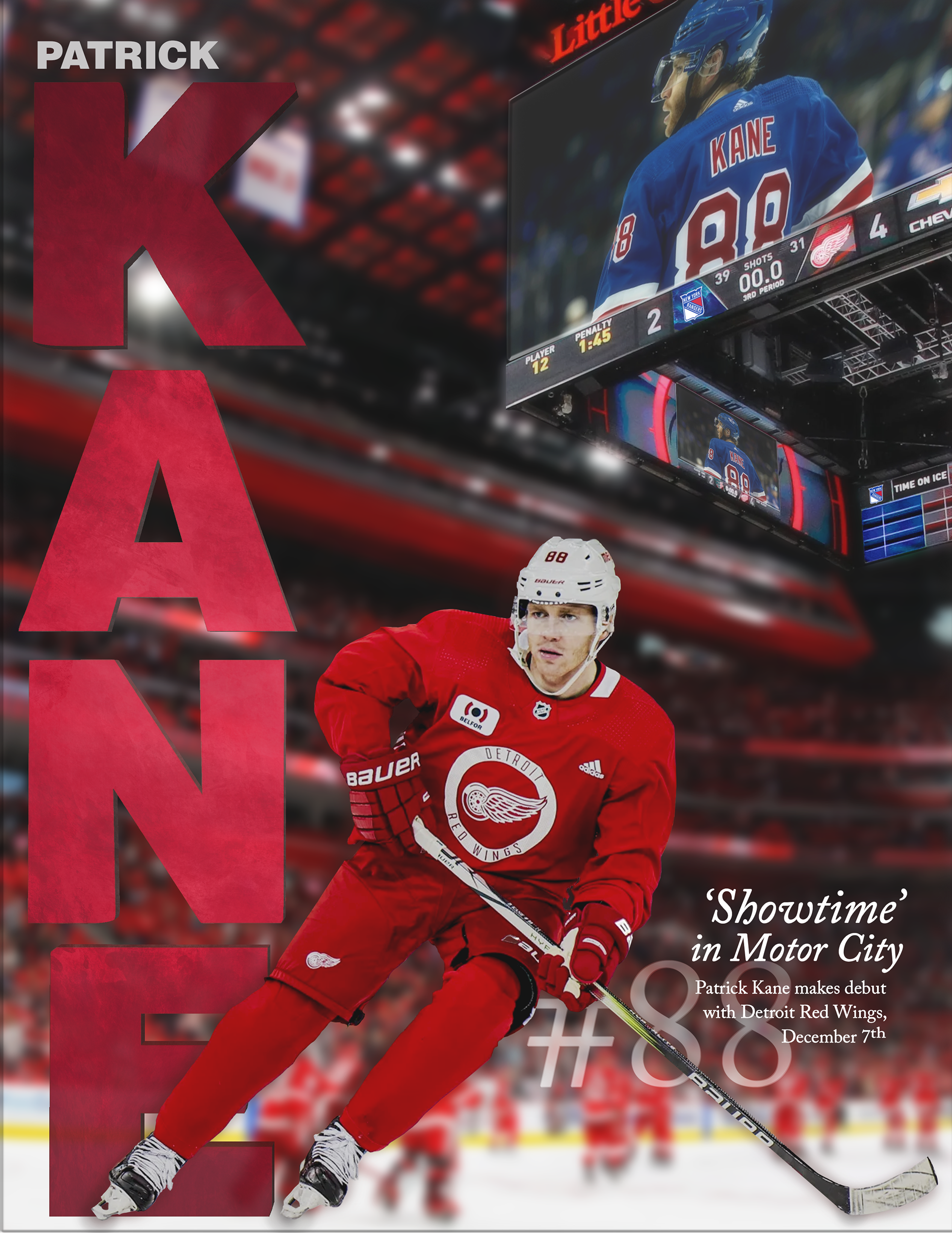 As a long-time Kane fan, I designed an Editorial Graphic dedicated to his latest move -- signing with the Detroit Red Wings. Designer's Note: He will forever be a Blackhawk in my heart.